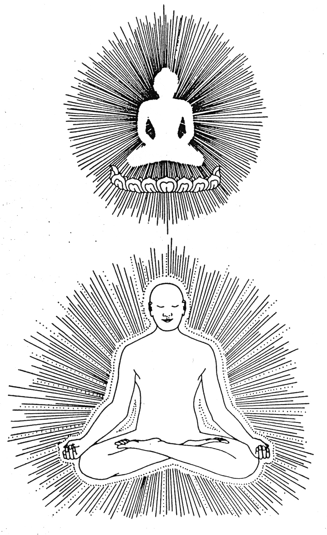 Controlling: We use „Breath-Rhythmisation„ till the breath is unhearable and no more thoughts appear in this stillness, then we turn the light inwards and use „Light-Mirroring„. When thoughts are coming up again disturbing our awareness and silence, we return to Breath-Rhythmisation. Thus we avoid, losing us in distraction or drowsiness (dullness/inertia)! In the end, we just let everything happen in waking awareness.